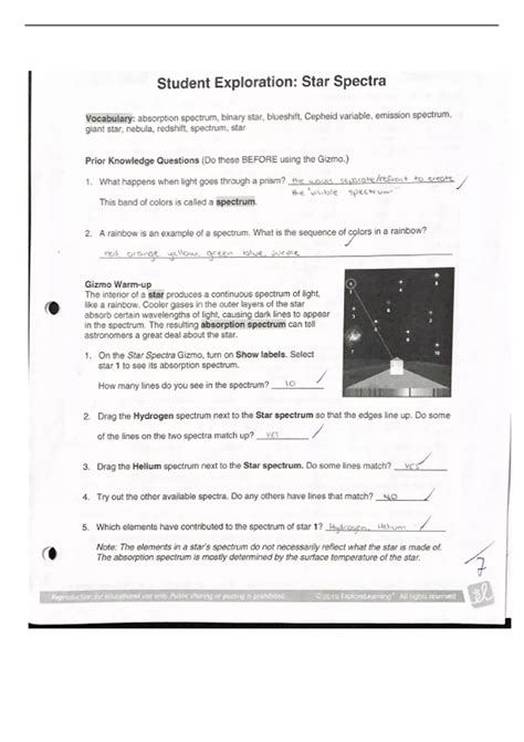Read Online gizmo student exploration star spectra answer key PDF